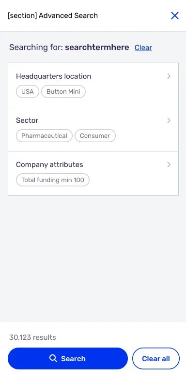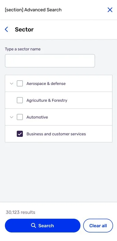 Advanced Search ScreensI designed Itriom’s first advanced search tool for mobile. The work took several months due to stakeholders' inputs/reviews, and I tested the search tool throughout the process with real users to get feedback ready for iteration.